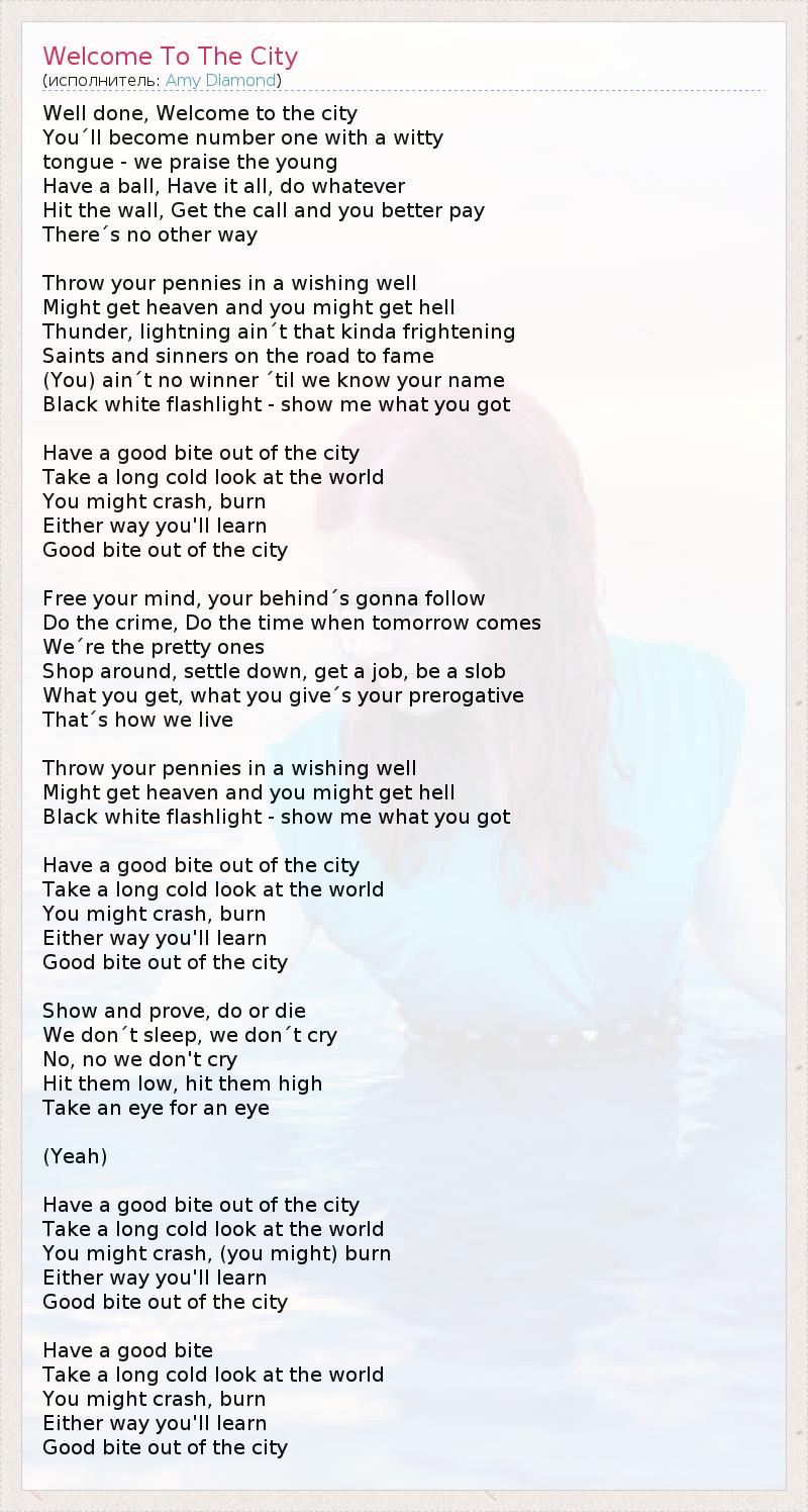 А как ты думаешь, о чем песня "Welcome To The City" ?