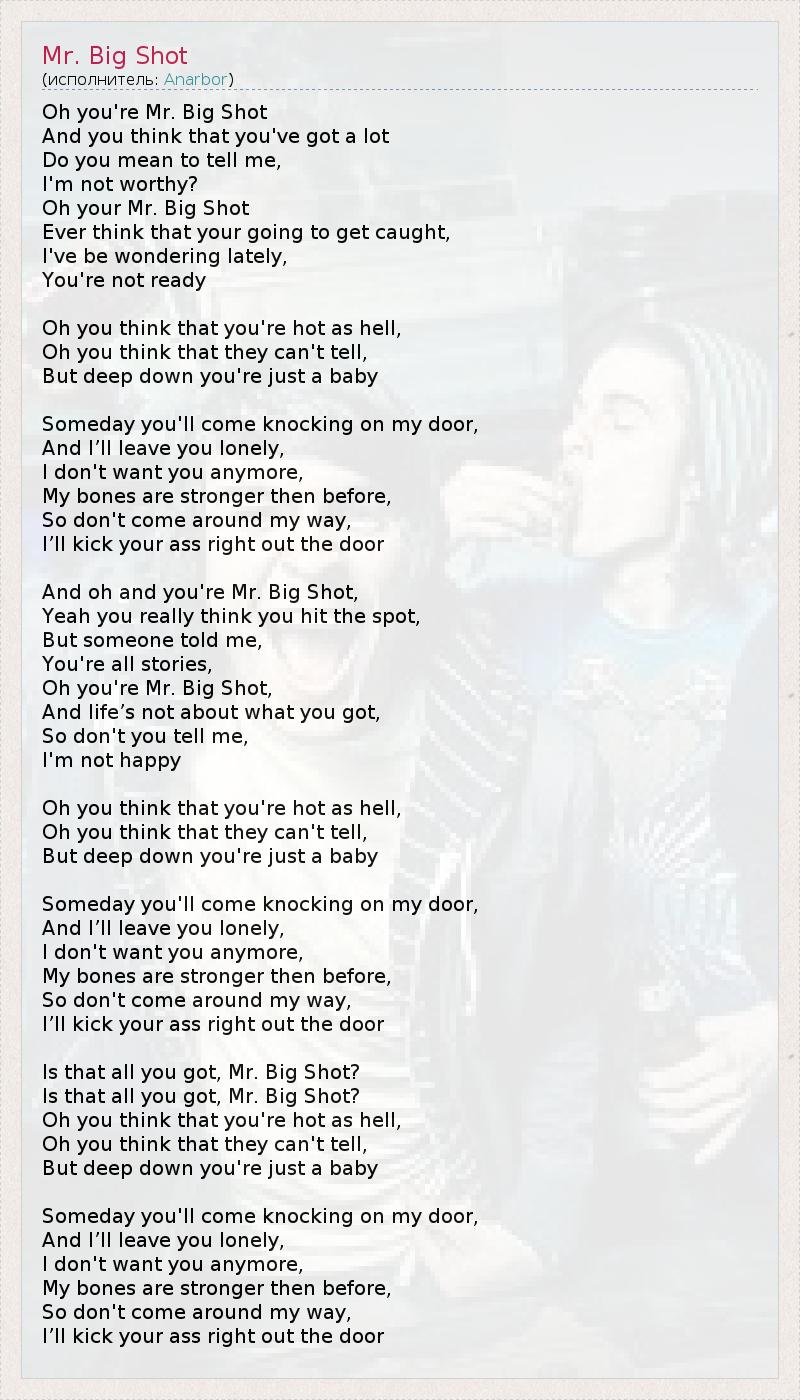 А как ты думаешь, о чем песня "Mr. Big Shot" ?