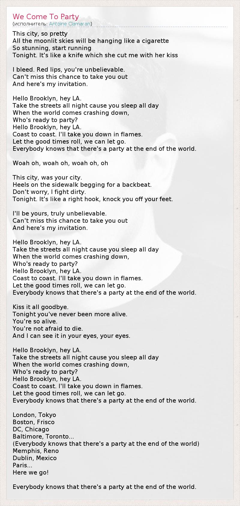 А как ты думаешь, о чем песня "We Come To Party" ?