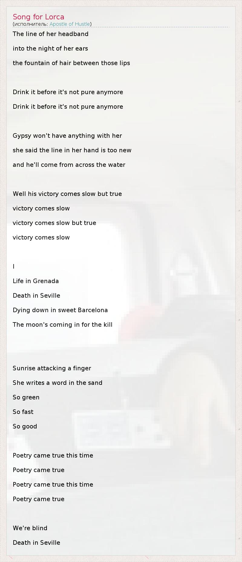 А как ты думаешь, о чем песня "Song for Lorca" ?