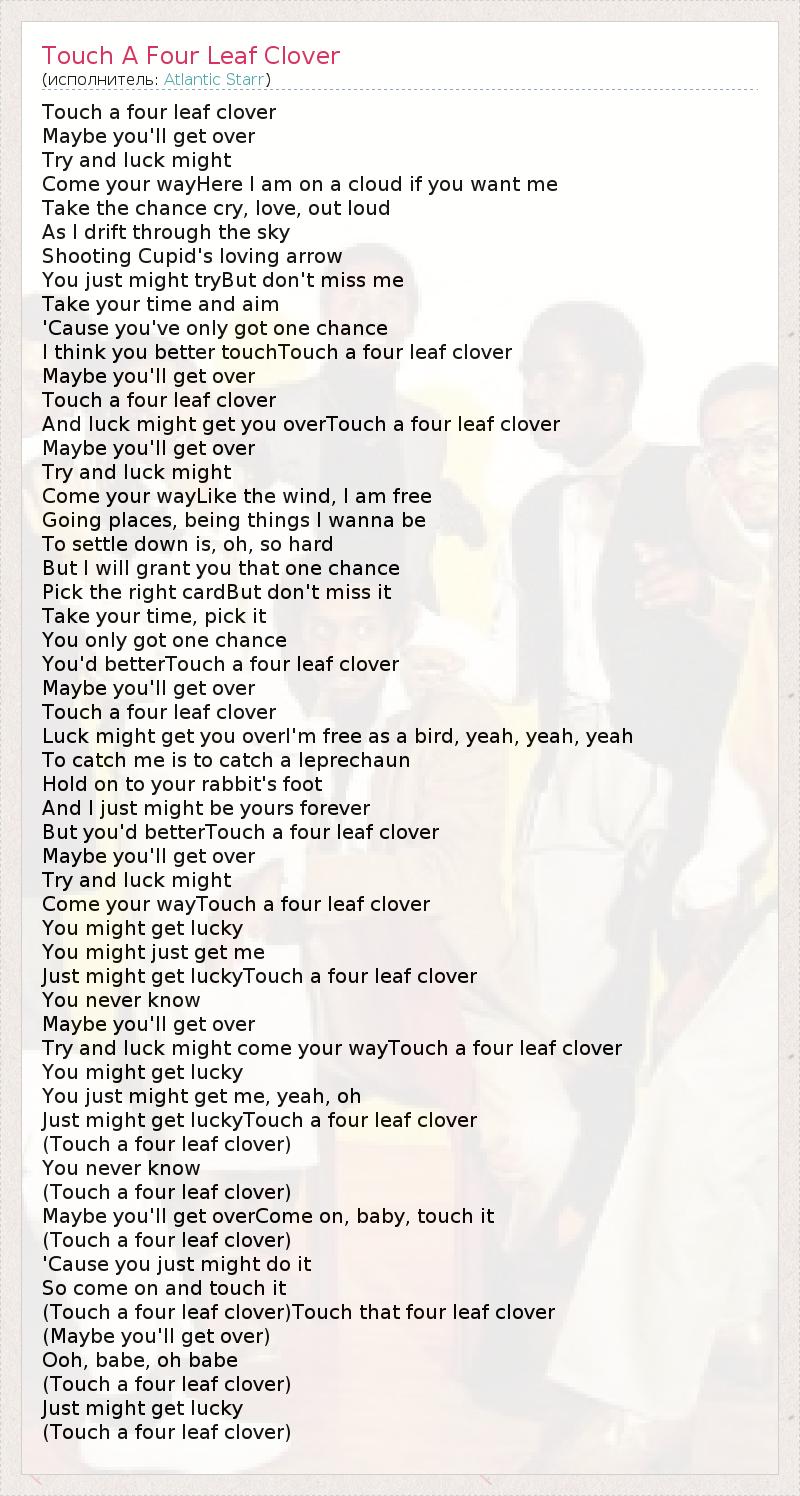 А как ты думаешь, о чем песня "Touch A Four Leaf Clover" ?