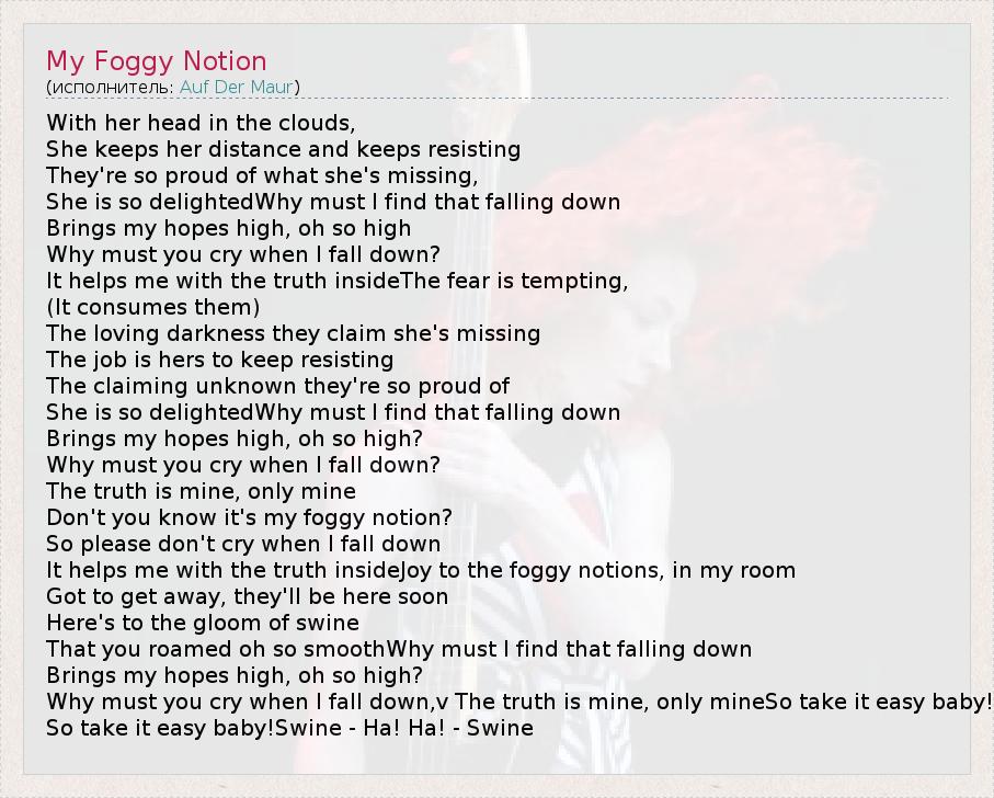 А как ты думаешь, о чем песня "My Foggy Notion" ?