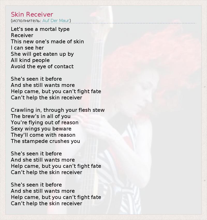 А как ты думаешь, о чем песня "Skin Receiver" ?