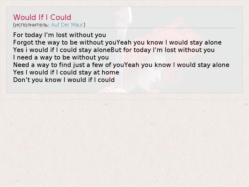 Yes i would if I could stay aloneBut for today I'm lost without you