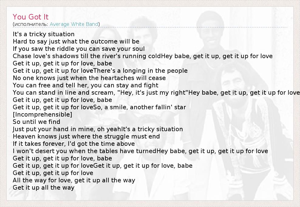 Get it up, get it up for loveGet it up, get it up for love, babe