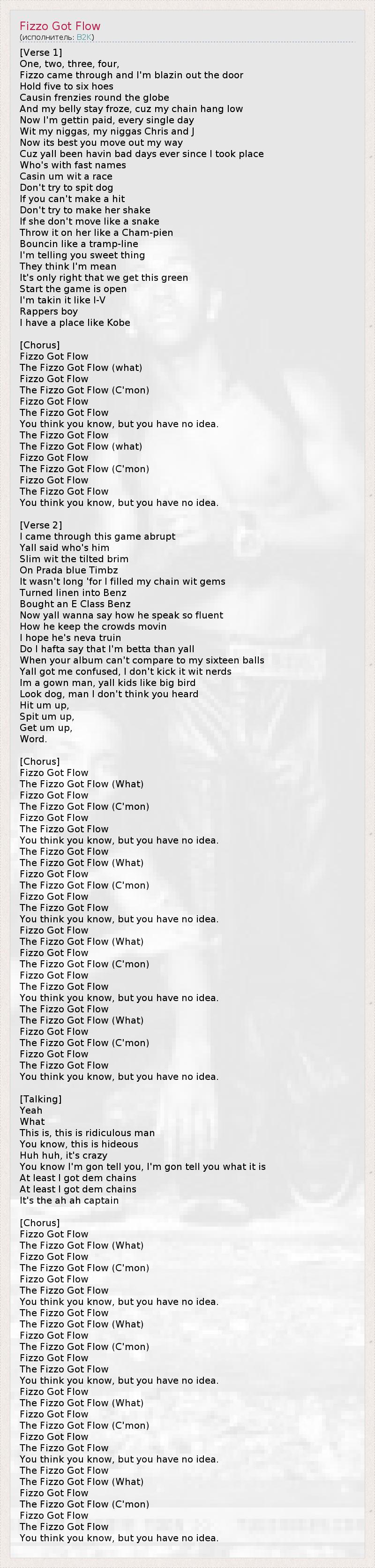 А как ты думаешь, о чем песня "Fizzo Got Flow" ?