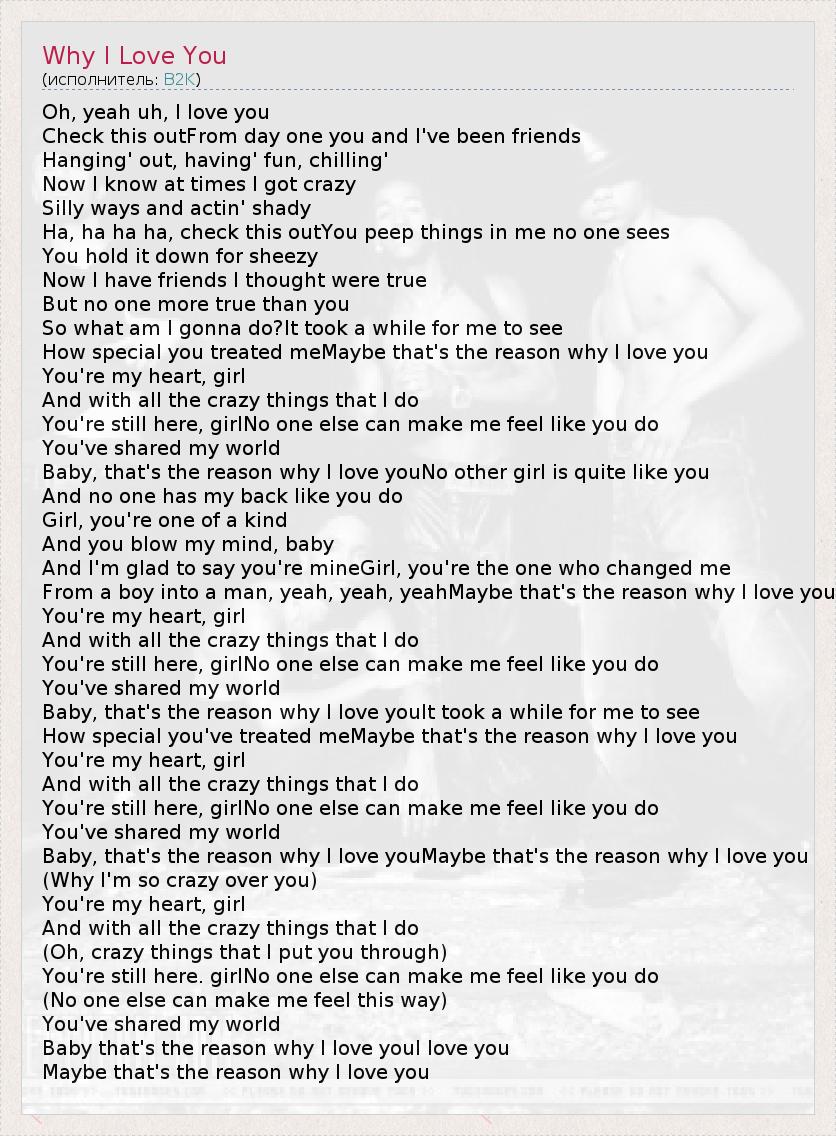 А как ты думаешь, о чем песня "Why I Love You" ?