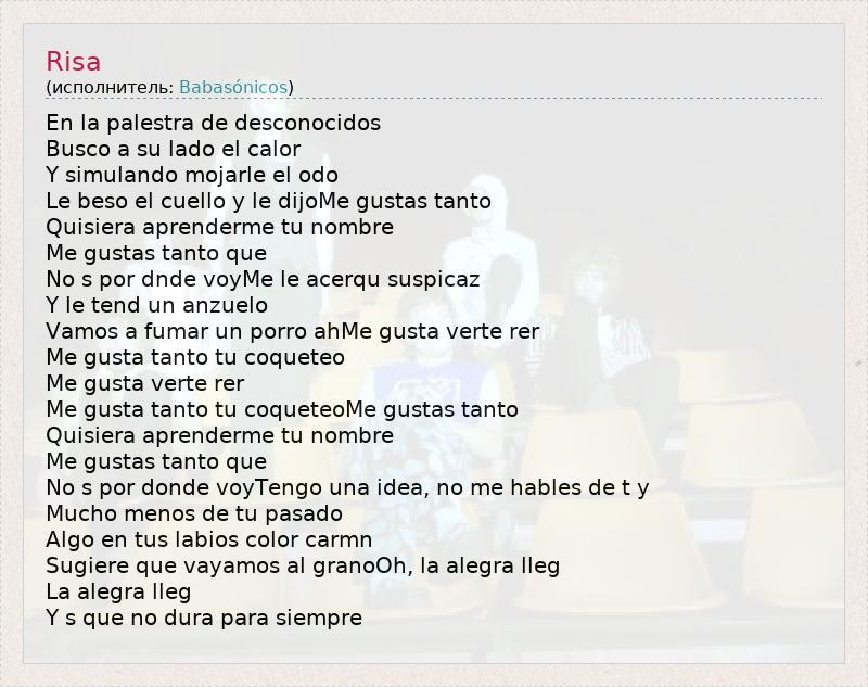 Это интересно:Babasónicos - аргентинская рок-группа, образованная в начале 1990-ых. Cтала одной из основных андерграунд-команд конца 90-ых.Название является синтезом от "Sai Baba" (индийский гуру) и от "The Jetsons" (по-испански - "Los Supersónicos").Лид-вокалист Adrián "Dárgelos" Rodríguez и клавишник Diego "Uma-T" Tuñón изначально решили играть в стиле "новой волны" (так называемый new wave), совершенно... продолжение