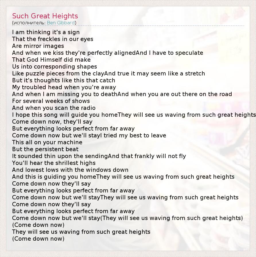 А как ты думаешь, о чем песня "Such Great Heights" ?