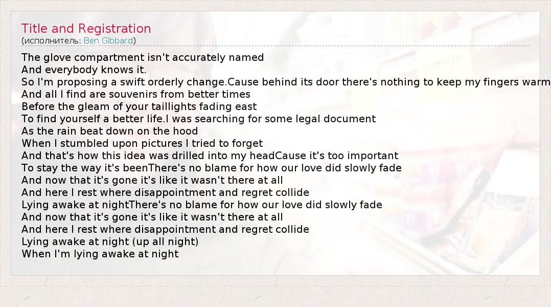 А как ты думаешь, о чем песня "Title and Registration" ?