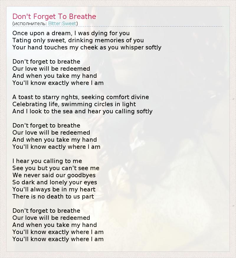 ГлавнаяИсполнителиBitter:SweetDon't Forget To Breathe