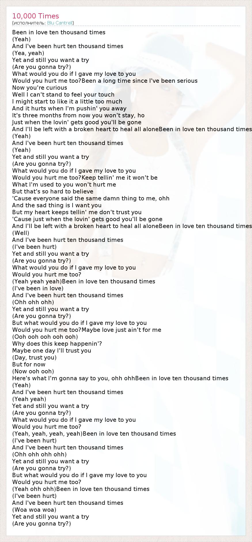 А как ты думаешь, о чем песня "10,000 Times" ?