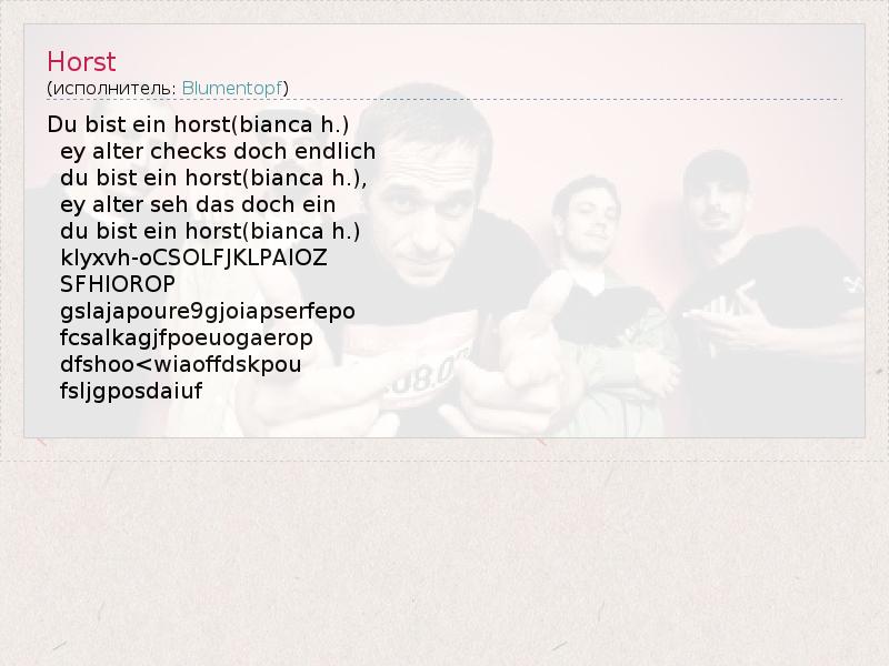 А как ты думаешь, о чем песня "Horst" ?