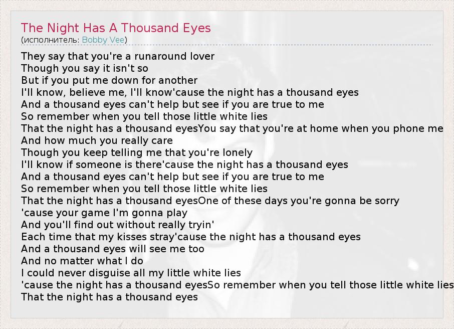 А как ты думаешь, о чем песня "The Night Has A Thousand Eyes" ?