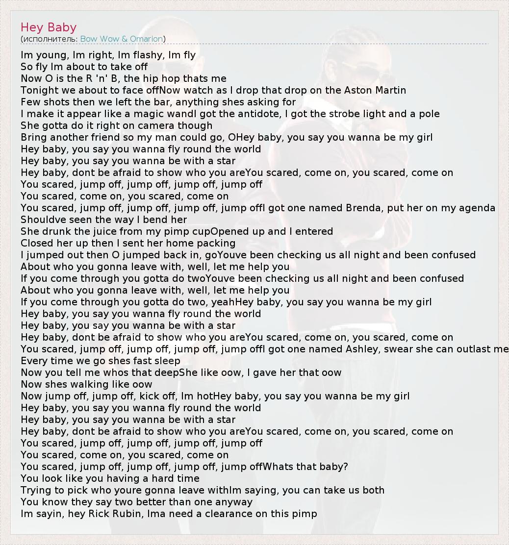 А как ты думаешь, о чем песня "Hey Baby" ?