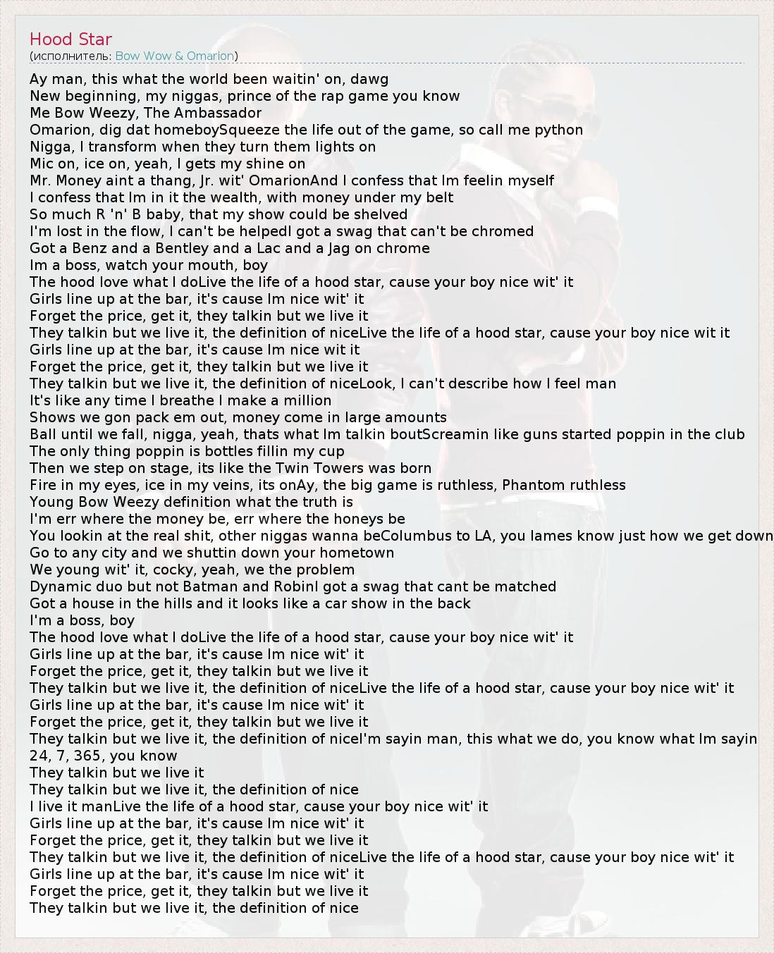 They talkin but we live it, the definition of niceLive the life of a hood star, cause your boy nice wit it