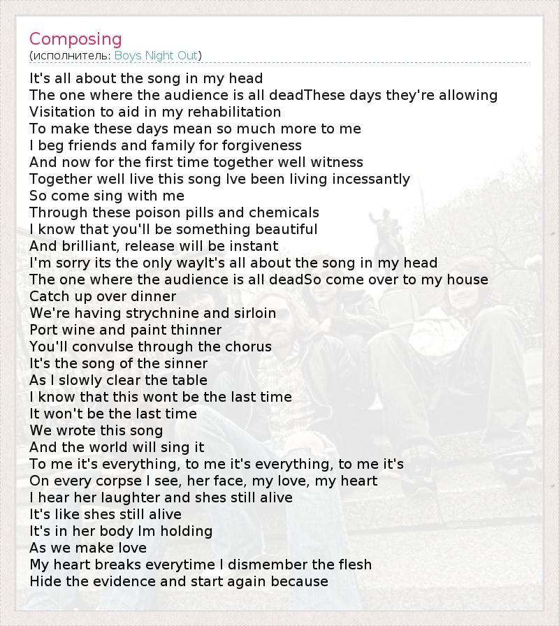 Это интересно:Группа «Boys Night Out» была сформирована вокалистом Connor Lovat-Fraser и гитаристом Jeff Davis в 2001 году, в Берлингтоне, Онтарио. Первой записью коллектива стало четырех-трековое демо «You Are My Canvas», в звучании которого была ярко выражена стилистика земляков – hardcore punk формации «Grade». Данная запись помогла музыкантам прописаться на лэйбле «One Day Savior Records», через который и был выпущен первый официальный релиз... продолжение