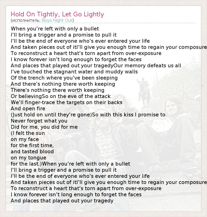 ГлавнаяИсполнителиBoys Night OutHold On Tightly, Let Go Lightly