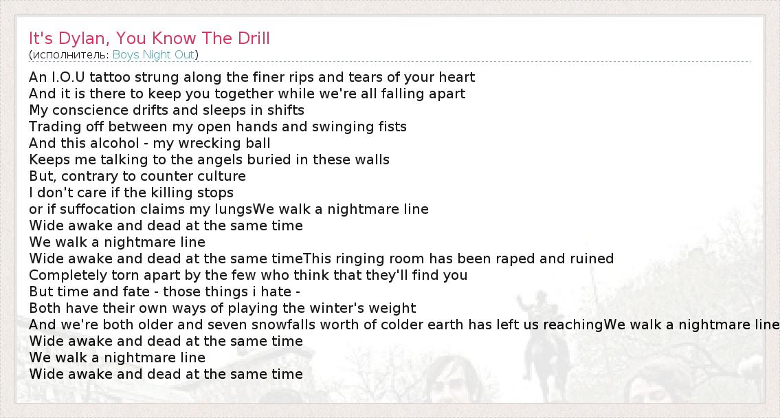 ГлавнаяИсполнителиBoys Night OutIt's Dylan, You Know The Drill