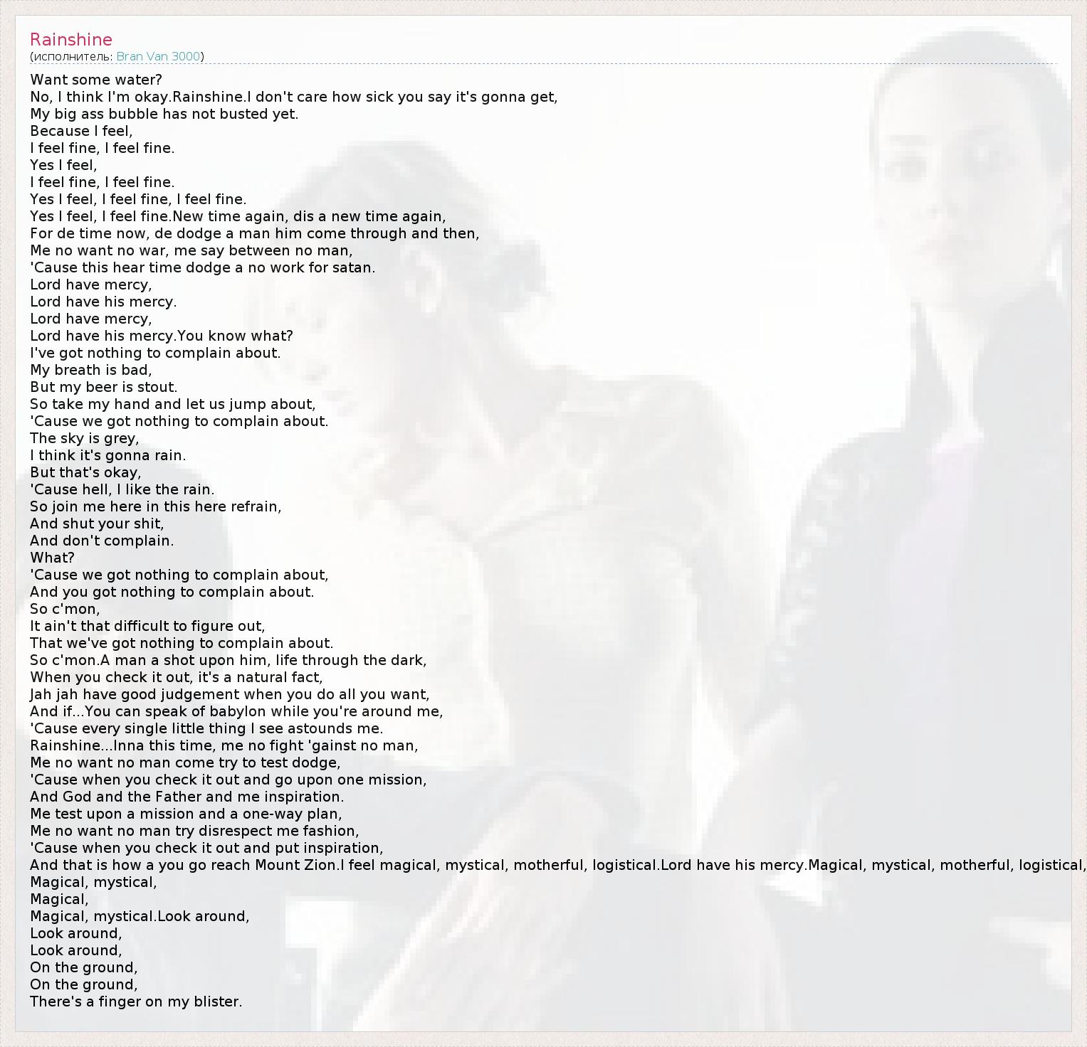 А как ты думаешь, о чем песня "Rainshine" ?