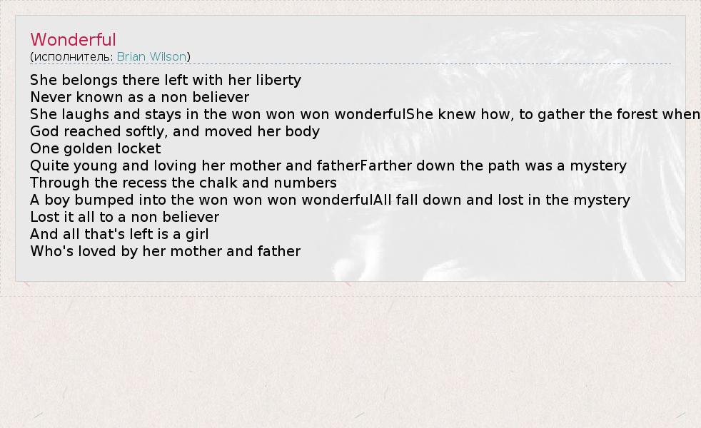 А как ты думаешь, о чем песня "Wonderful" ?