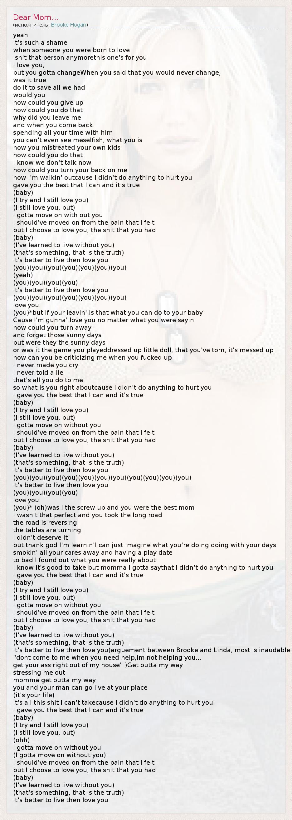 А как ты думаешь, о чем песня "Dear Mom..." ?