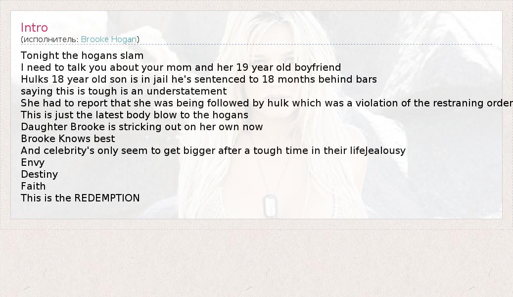 Это интересно:Брук Эллен Боллеа или Брук Хоган (Brooke Hogan) родилась 5 мая 1988 года в США. Она является известной американской певицей и яркой светской личностью. Снялась в ряде сериалов, где сыграла главные роли.Брук Хоган родилась в Тампе, штат Флорида. Её отец реслер Халк Хоган. Во сезон учебы в средней школе посещала хореографический круг и занималась гимнастикой. Так же женщина часть времени уделяла... продолжение