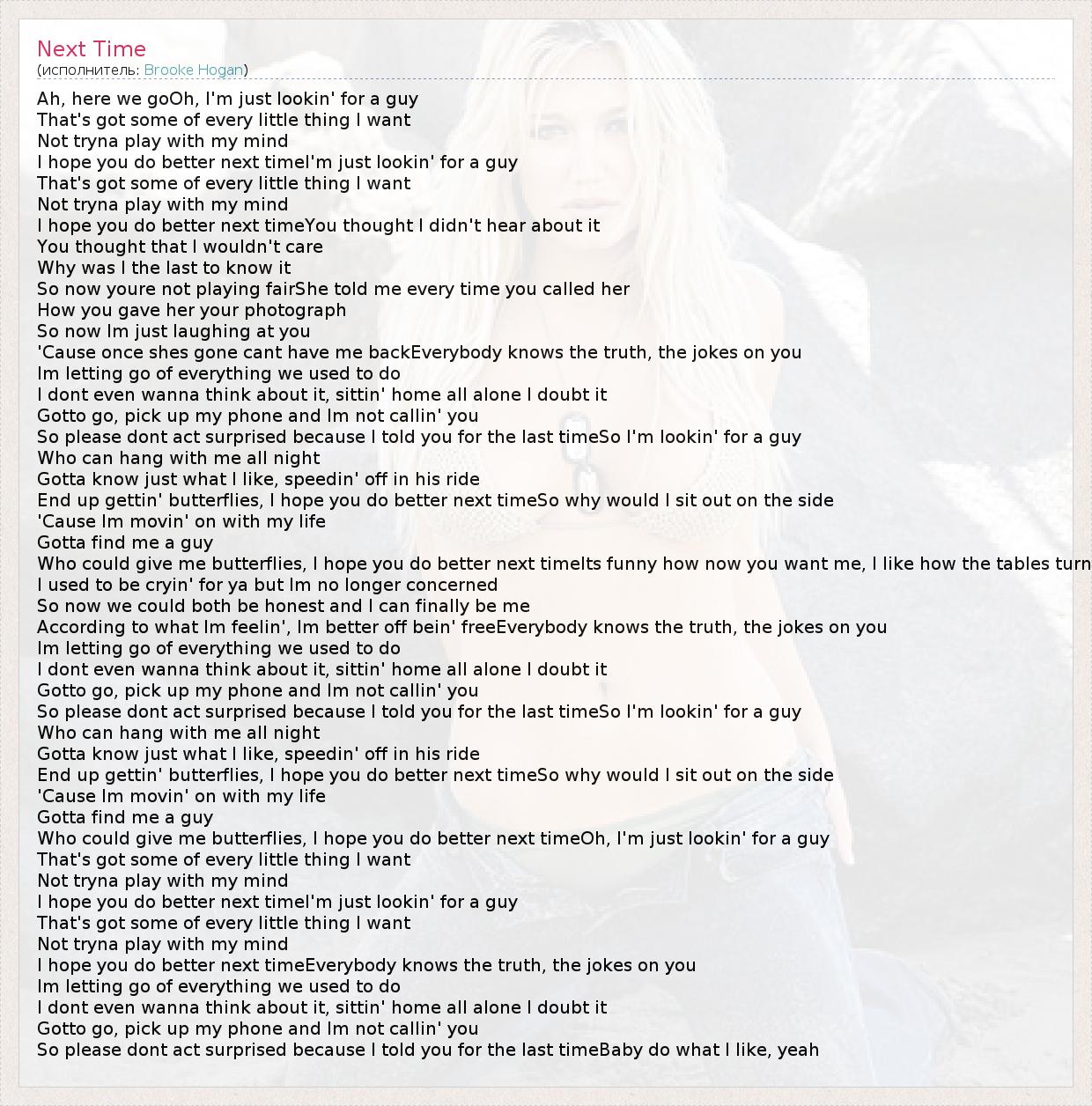 Who could give me butterflies, I hope you do better next timeOh, I'm just lookin' for a guy