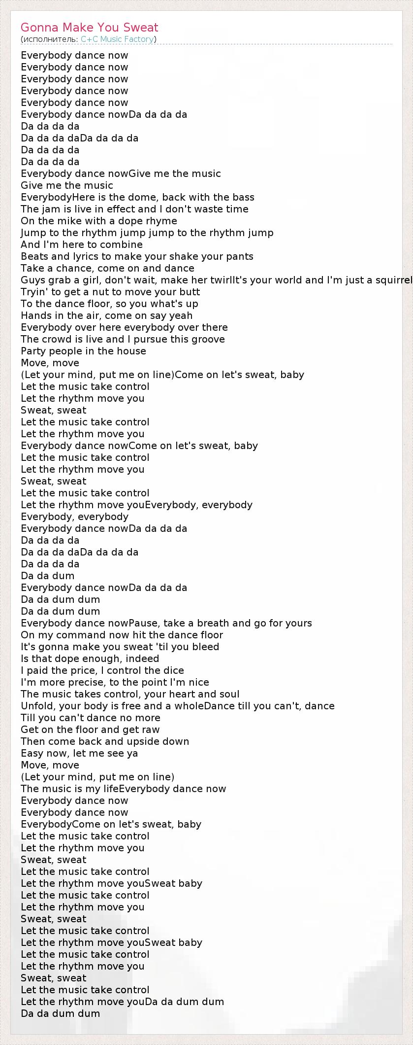 А как ты думаешь, о чем песня "Gonna Make You Sweat" ?