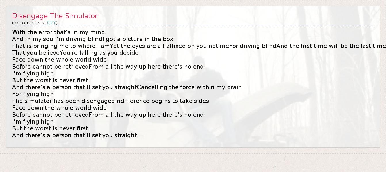 ГлавнаяИсполнителиCKYDisengage The Simulator