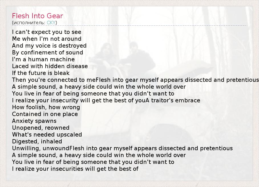 А как ты думаешь, о чем песня "Flesh Into Gear" ?