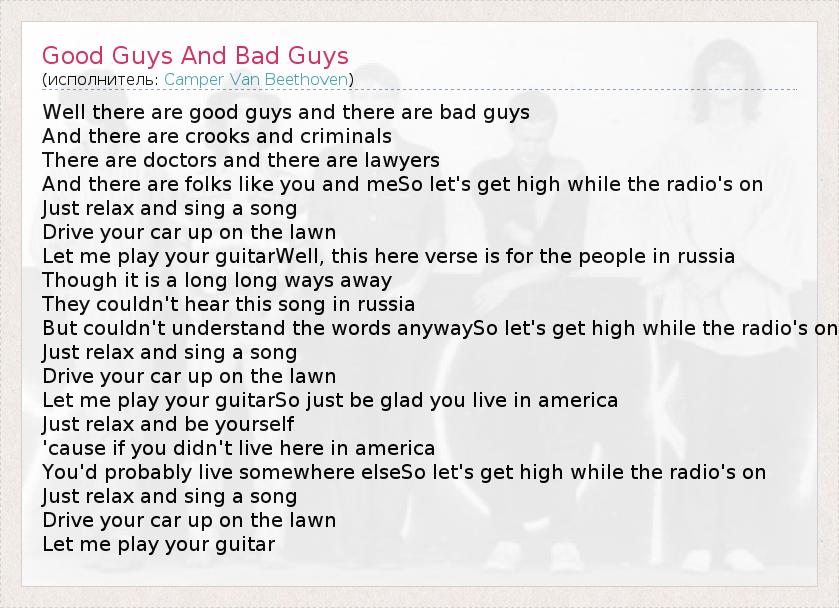 А как ты думаешь, о чем песня "Good Guys And Bad Guys" ?