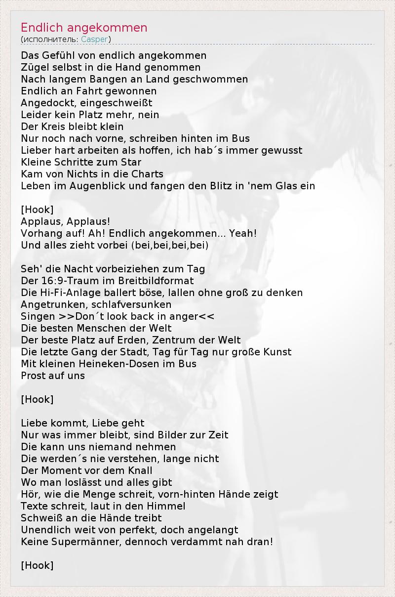 А как ты думаешь, о чем песня "Endlich angekommen" ?