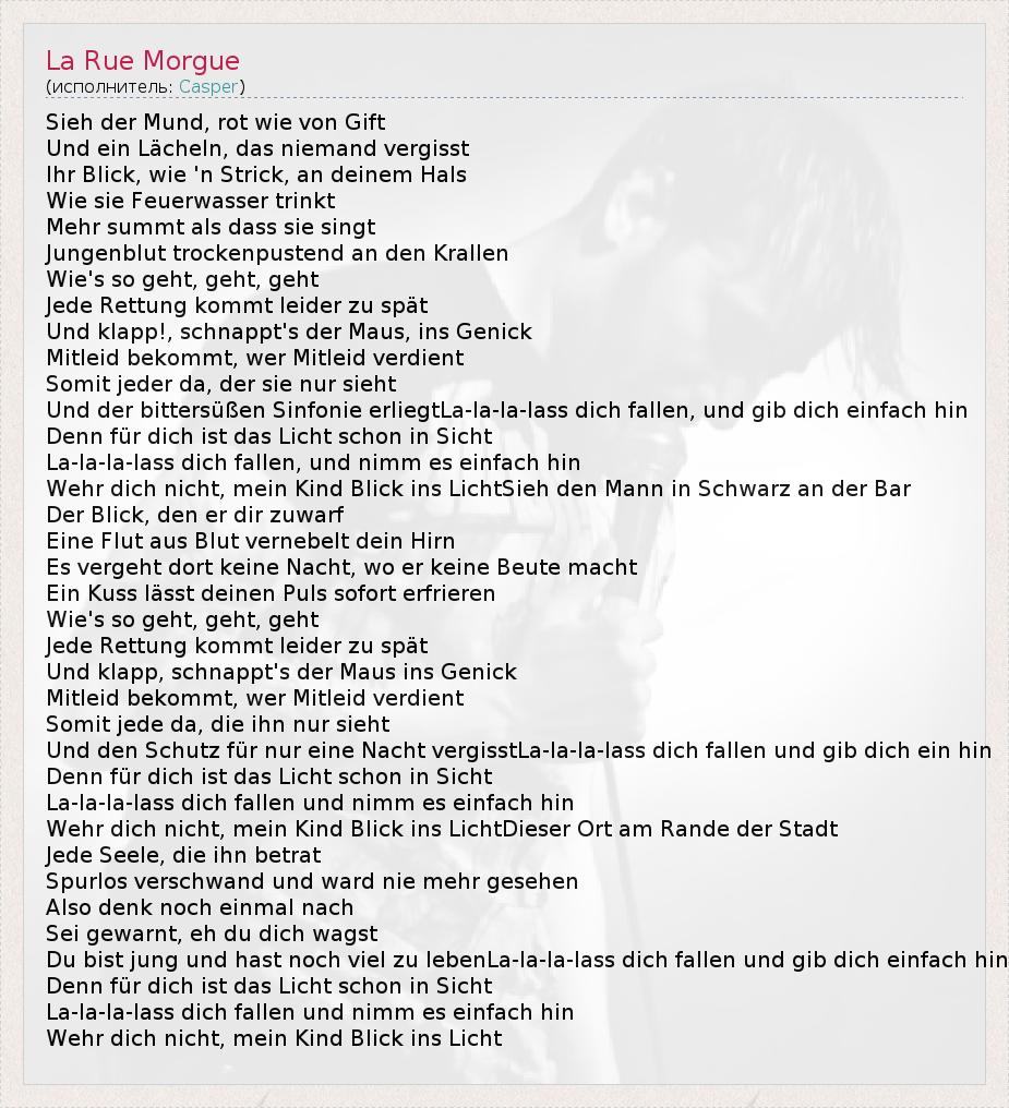 А как ты думаешь, о чем песня "La Rue Morgue" ?