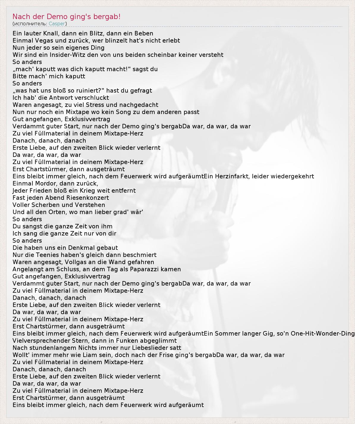 ГлавнаяИсполнителиCasperNach der Demo ging's bergab!