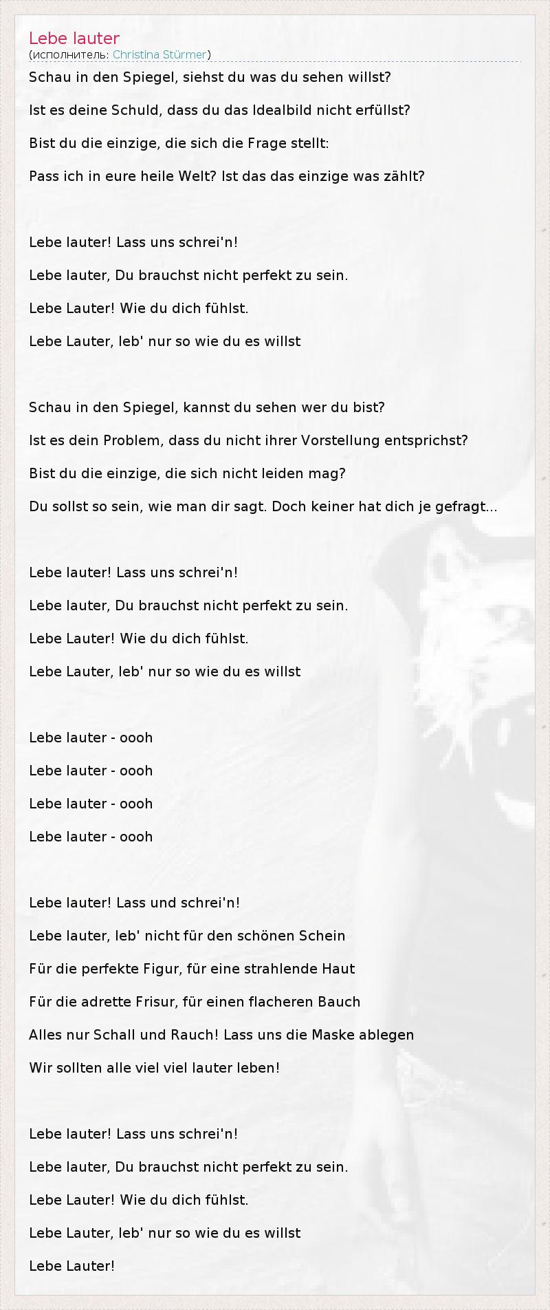 А как ты думаешь, о чем песня "Lebe lauter" ?