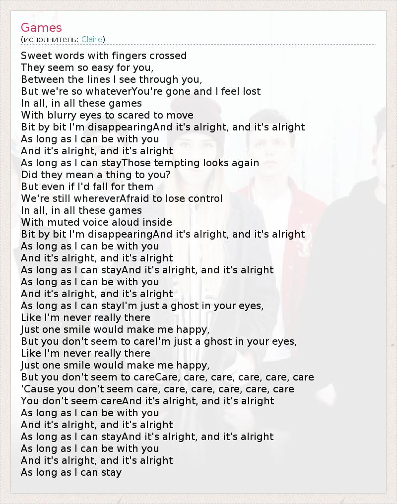 Bit by bit I'm disappearingAnd it's alright, and it's alright