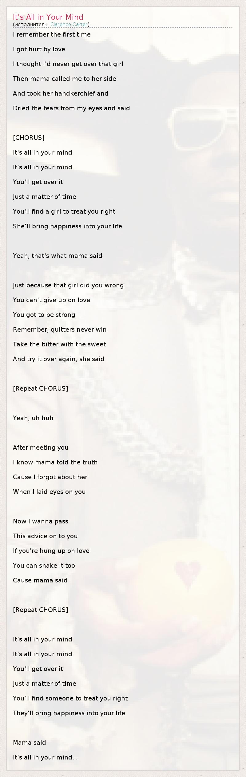 А как ты думаешь, о чем песня "It's All in Your Mind" ?