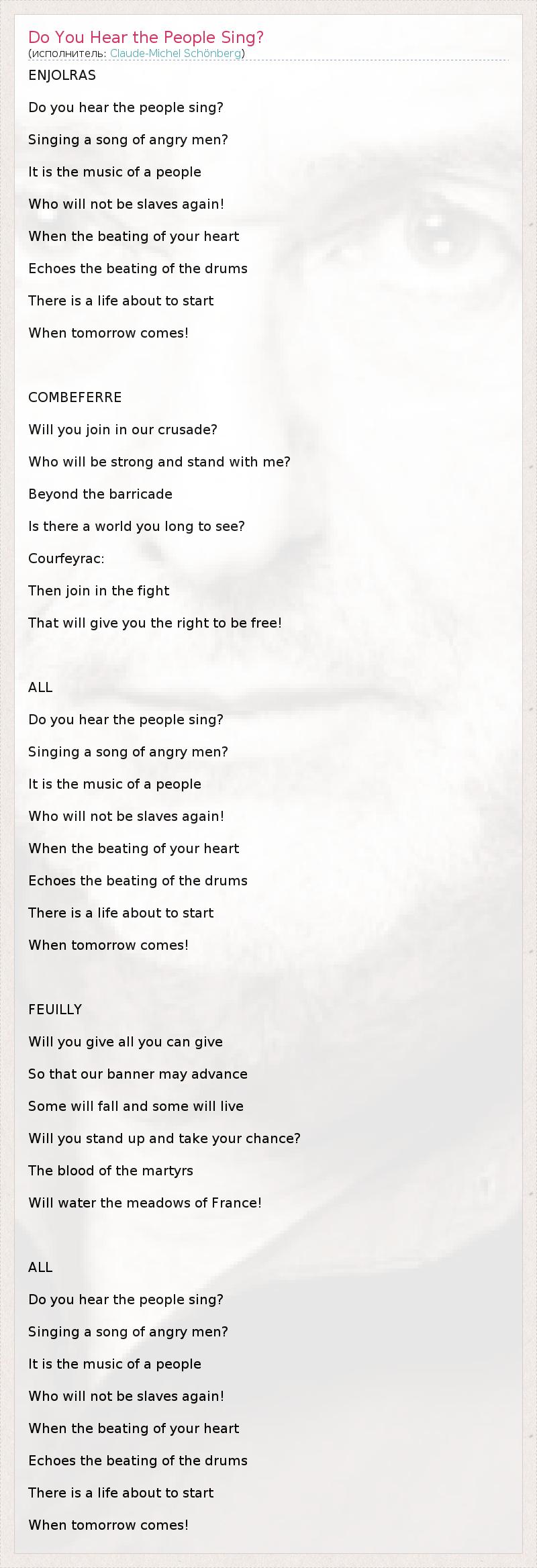 А как ты думаешь, о чем песня "Do You Hear the People Sing?" ?