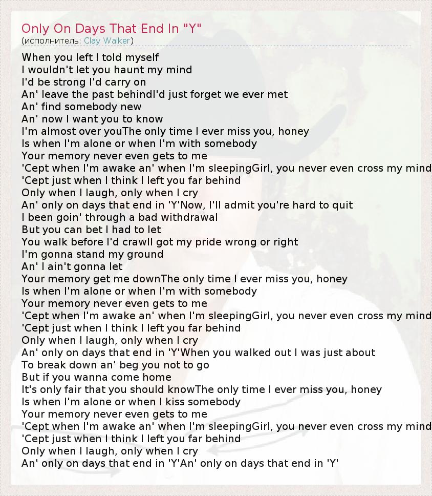 ГлавнаяИсполнителиClay WalkerOnly On Days That End In "Y"