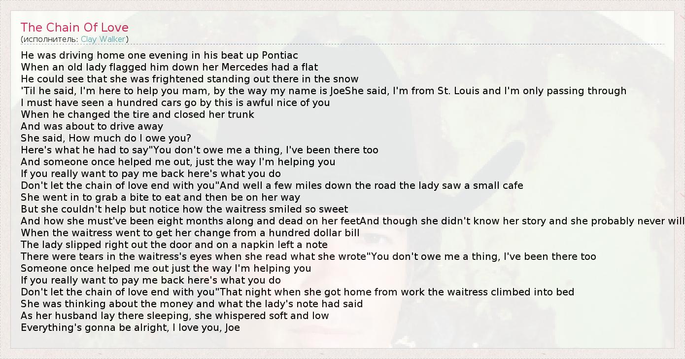 А как ты думаешь, о чем песня "The Chain Of Love" ?