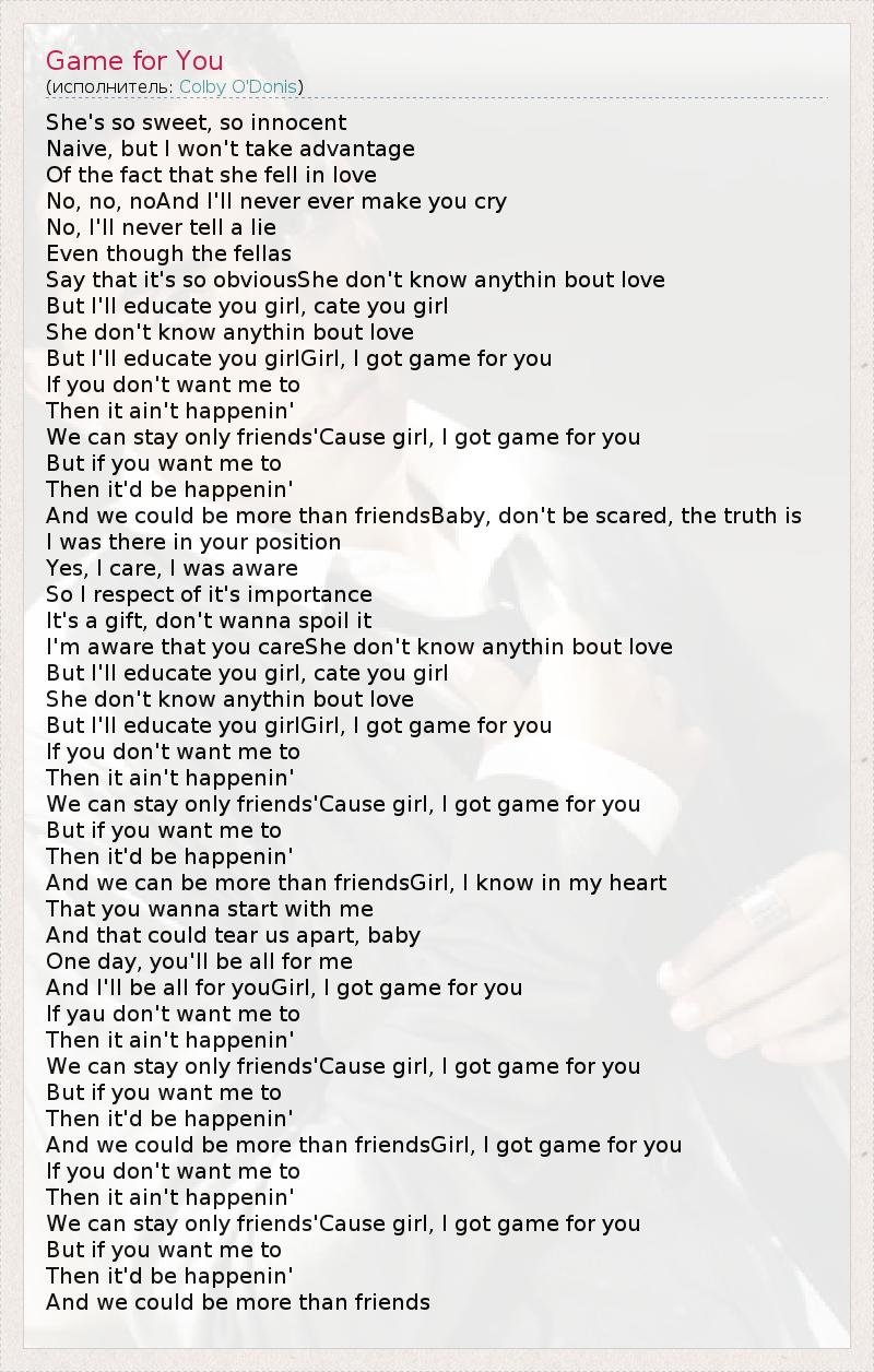 We can stay only friends'Cause girl, I got game for you