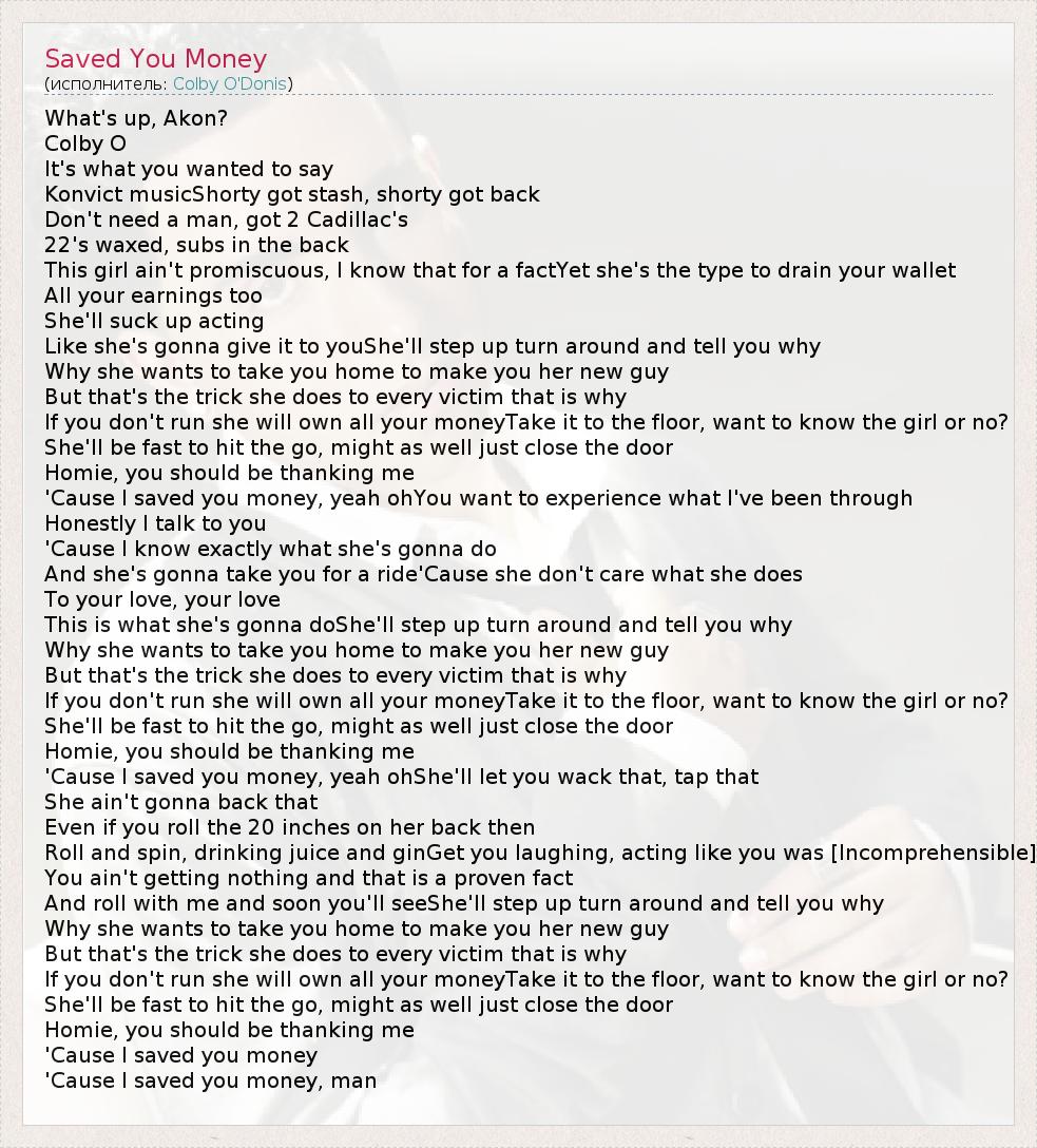 А как ты думаешь, о чем песня "Saved You Money" ?