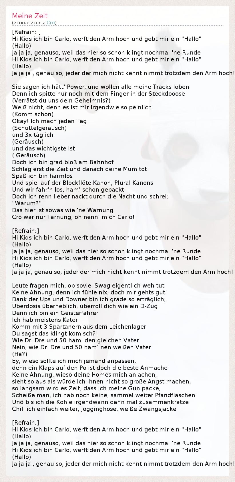 Знаете, "Cro" - это просто маскировка, ох, зовите меня Карло.  5
