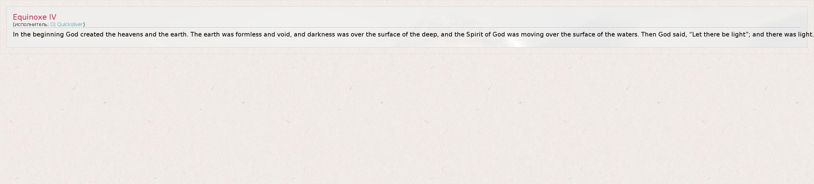 Это интересно:До того, как начать писать музыку, он увлекался горным велосипедом, серфингом и ходил в спортзалы. В общем, был помешан на спорте. Страсть к музыке у него появилась благодаря Jean Michel Jarre, Klaus Schulze и Kraftwerk. Позже Orhan Terzi устроился на работу в одну бельгийскую Dance-и Trance-студию, и музыка из увлечения превратилась в профессию. Первая композиция DJ Quicksilver "Bingo Bongo", которая вышла в начале 1996 года,... продолжение