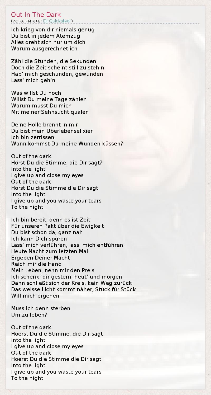 А как ты думаешь, о чем песня "Out In The Dark" ?