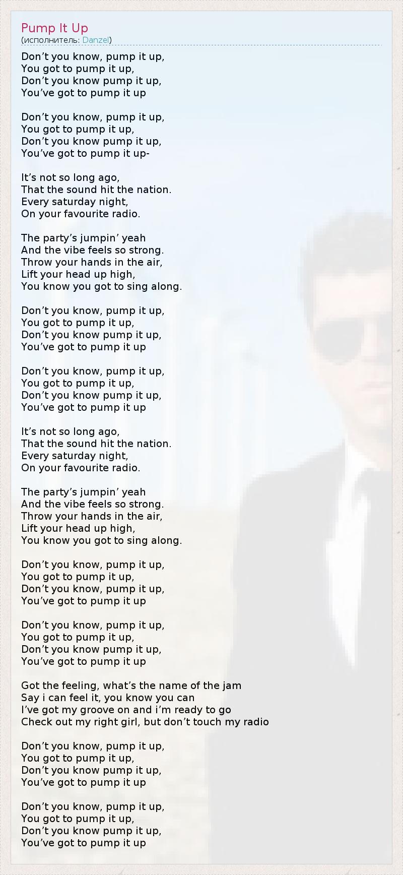 Don’t you know pump it up,
