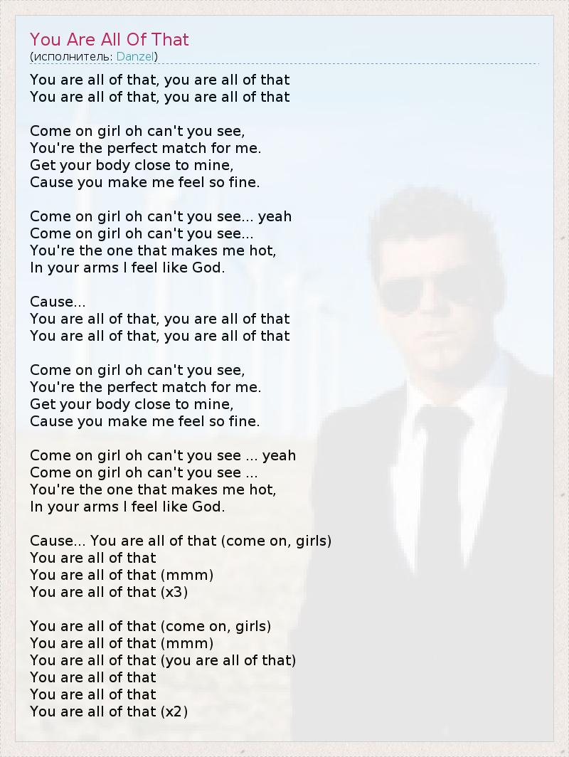А как ты думаешь, о чем песня "You Are All Of That" ?