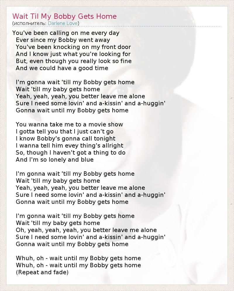 Gonna wait until my Bobby gets home