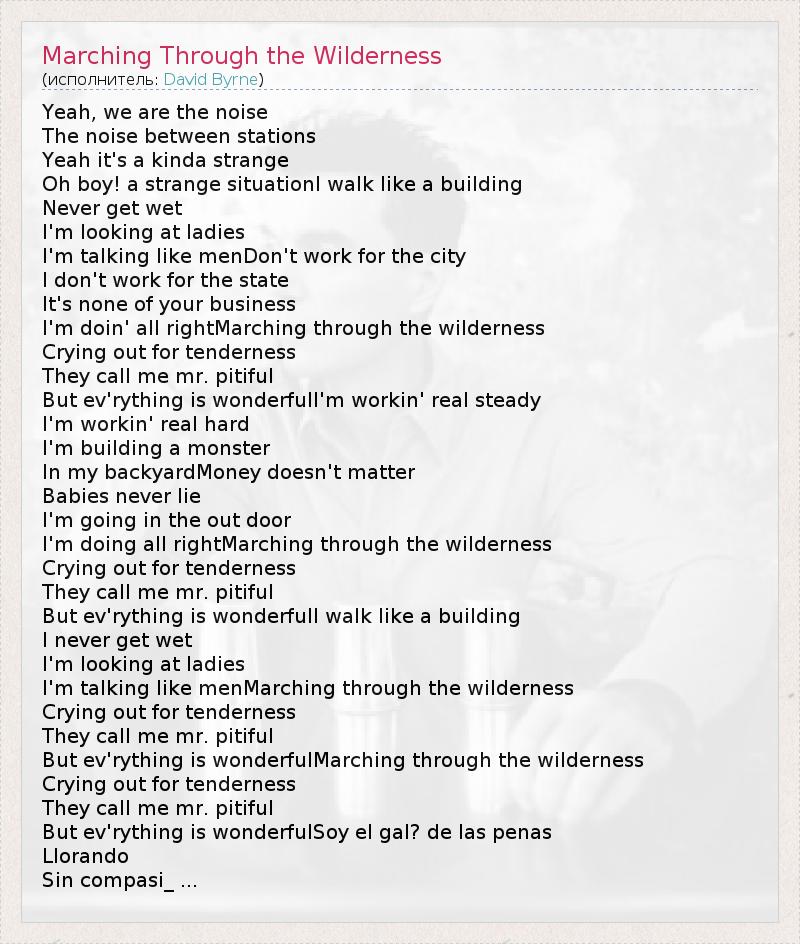 ГлавнаяИсполнителиDavid ByrneMarching Through the Wilderness
